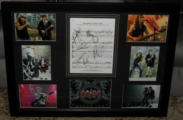Beautiful tribute to their album BLACK ICE with a fully signed Music Sheet "Stormy May Day"