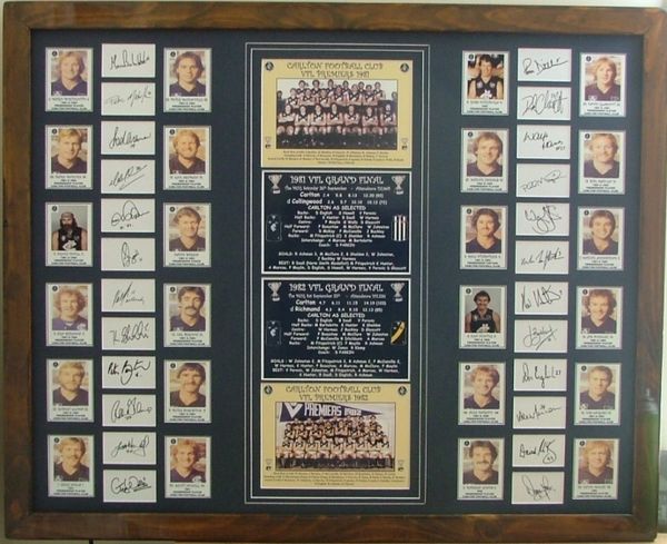 Personally signed on white cards by David Parkin(Coach) Mike Fitzpatrick(Captain) Ken Hunter Scott Howell, Greg Wells, Bruce Doull, David McKay, Warren Jones, Ross Ditchburn, David Glascott, Wayne Johnston, Alex Marcou, Rod Ashman, Jimmy Buckley, Mario Bortolotto, Ken Sheldon, Val Perovic, Peter Bosostow, Des English, Phil Maylin, Mark McClure, Robert Klomp, Peter McConville and Wayne Harmes