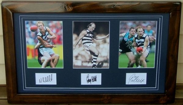 Signed on white cards by Gary Ablett Snr, Gary Ablett Jnr and Nathan Ablett