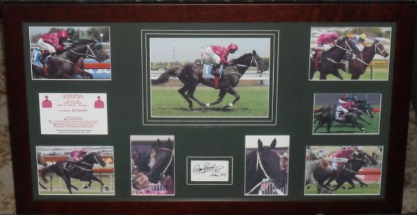 This limited edition item has been personally signed by Jockey Darren Beadman on a white card